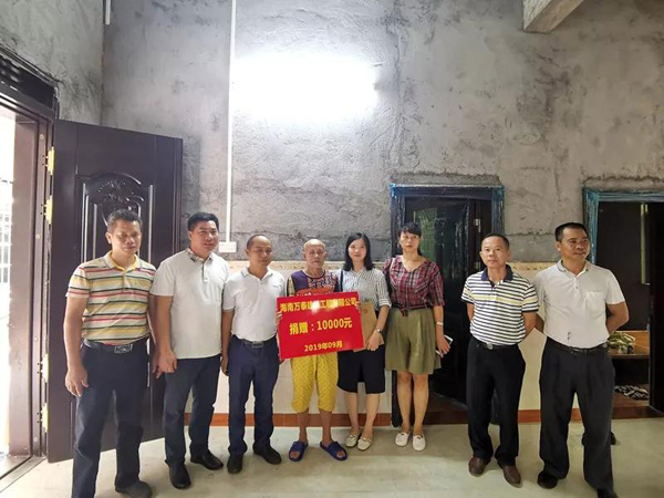緊接著,海南萬泰領(lǐng)導(dǎo)一行來到龍?zhí)伶?zhèn)新民村委會北喜村的低保貧困戶符執(zhí)仲家中。符執(zhí)仲家里只有他和他的兒子,小孩還在上學(xué),家境貧寒,每月依靠領(lǐng)取的低保金過日子,沒有能力將新房建好。海南萬泰本著踐行愛心扶貧精神,捐贈10000元給符執(zhí)仲支持建設(shè)新房。符執(zhí)仲表示感謝海南萬泰建筑工程公司,今后會依靠雙手,努力賺錢,爭取早日脫貧。
