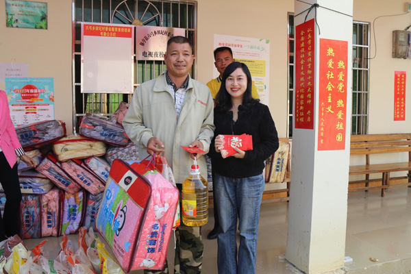 (現(xiàn)場(chǎng)發(fā)放愛(ài)心扶貧物資)