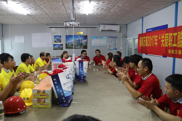 海南萬泰在追求企業(yè)發(fā)展的同時,始終把民工利益擺在重要位置,關(guān)愛民工工作生活。長期以來,海南萬泰都對一線工人的生產(chǎn)生活格外重視,通過節(jié)日慰問、送清涼等一系列活動,深切表達(dá)公司領(lǐng)導(dǎo)及同事對長期駐扎一線的項目工人的關(guān)懷之情。