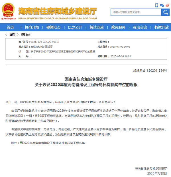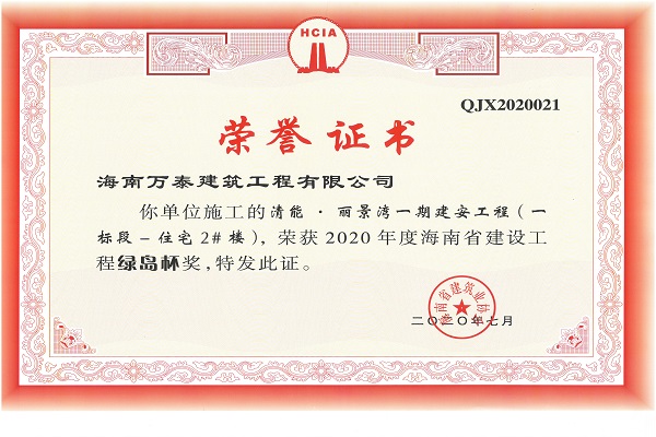 海南省建設(shè)工程“綠島杯”代表著海南省工程建設(shè)的最高質(zhì)量水平。海南萬泰公司獲得此項(xiàng)榮譽(yù),不僅是對(duì)“清能·麗景灣一期建安工程(一標(biāo)段—住宅2#樓)質(zhì)量的肯定,也是對(duì)海南萬泰公司管理水平的肯定。