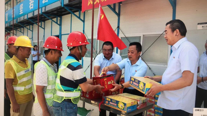 ▲高新區(qū)兩新工委領(lǐng)導(dǎo)到長(zhǎng)安項(xiàng)目部開(kāi)展送清涼活動(dòng)