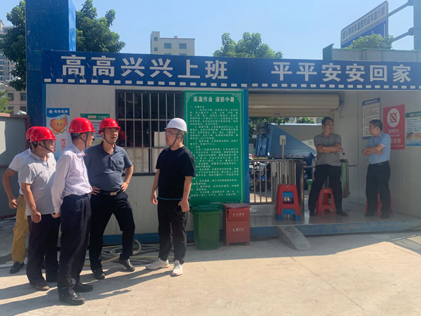 “國檢”檢查組的工作人員在張小龍總經(jīng)理的帶領(lǐng)下在博大·錦繡濱江工地進行實地檢查。