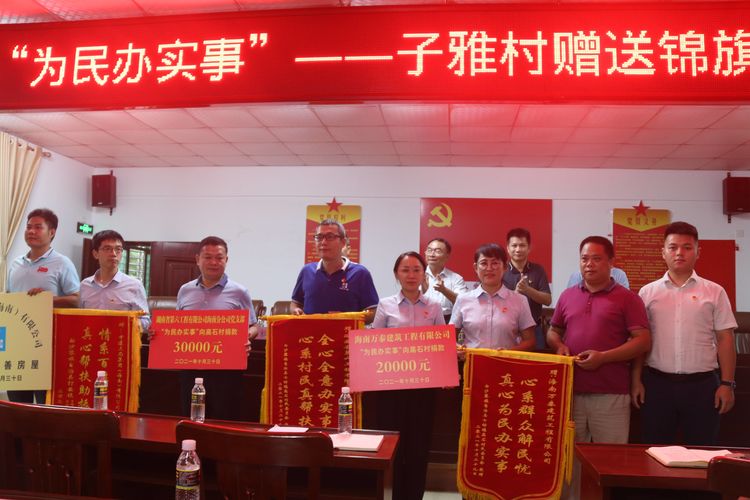 海南萬(wàn)泰建筑工程有限公司自成立以來(lái)就堅(jiān)定不移聽(tīng)黨話、感黨恩、跟黨走,通過(guò)開(kāi)展黨課、為民辦實(shí)事、主題教育活動(dòng)等形式,學(xué)以正心、學(xué)以致用、學(xué)以創(chuàng)新。近些年,在省住建廳的指導(dǎo)和幫助下,在企業(yè)不斷發(fā)展壯大的同時(shí),不忘承擔(dān)社會(huì)責(zé)任,積極響應(yīng)省廳關(guān)于鄉(xiāng)村振興、鞏固脫貧攻堅(jiān)等公益民生事業(yè)的號(hào)召,慷慨解囊,為民辦實(shí)事,為白沙縣爾信村、高石村、打安村等多個(gè)幫扶村捐款捐物,修筑了民心漫水橋、便民路、村民文化廣場(chǎng)路燈及牛棚改造等項(xiàng)目,以一己綿薄奉獻(xiàn)之力,倡導(dǎo)社會(huì)和諧大愛(ài)。
