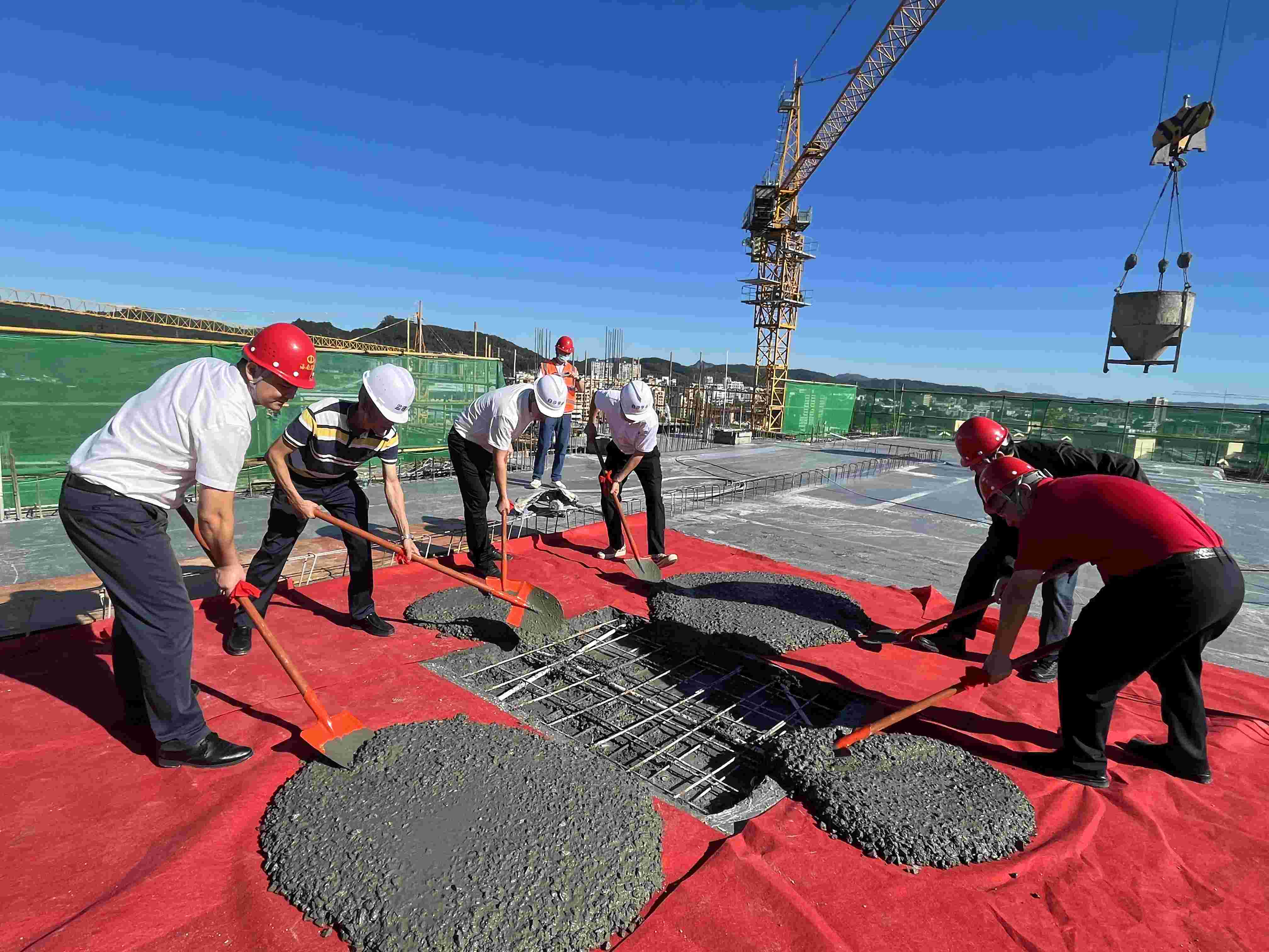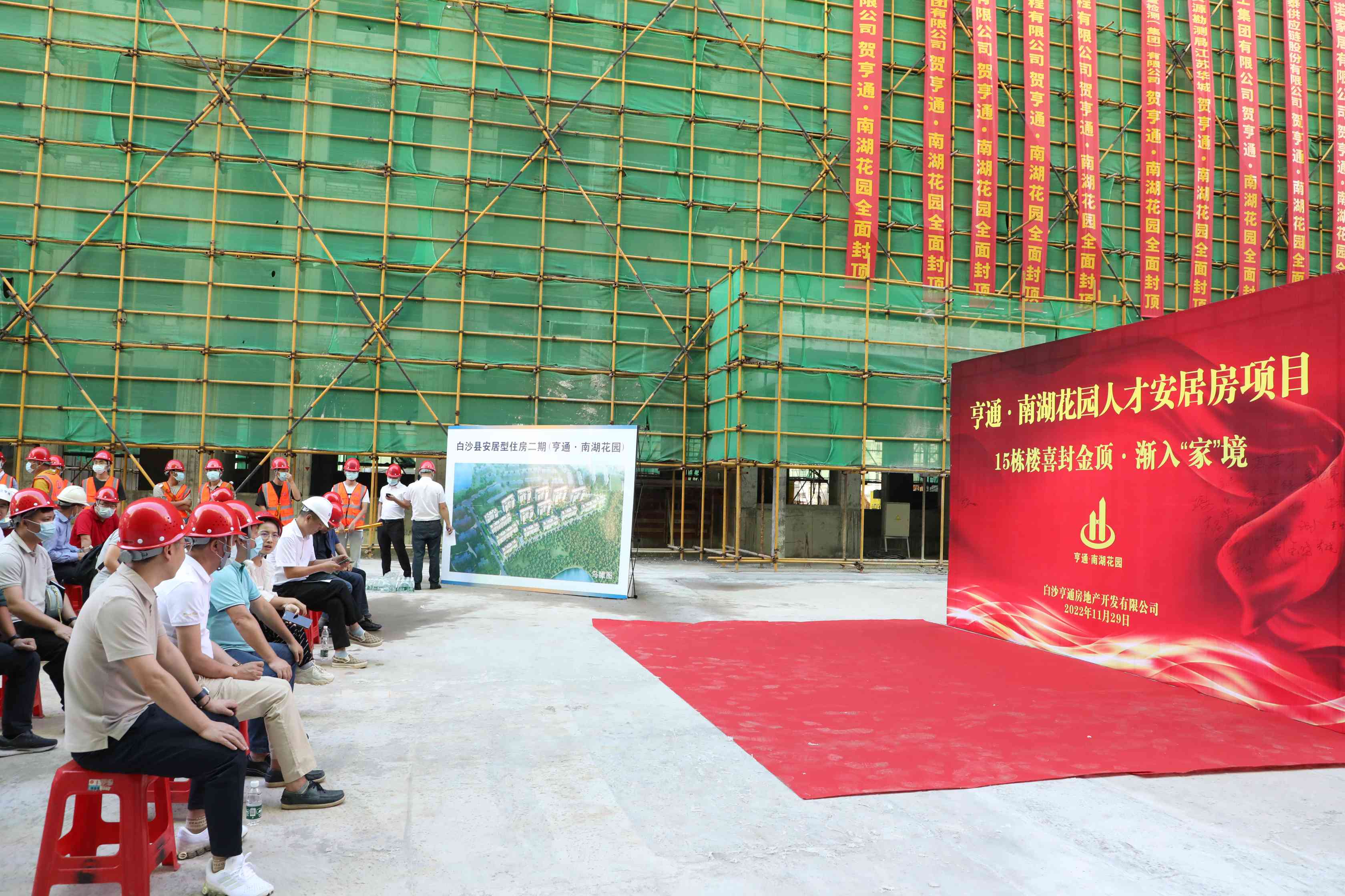 為了貫徹落實(shí)黨的二十大精神,加快推進(jìn)白沙重點(diǎn)民生工程建設(shè),致力于打造宜居新生活,2022年11月29日,由海南萬泰建筑工程有限公司承建的省重點(diǎn)安居房項(xiàng)目——白沙亨通·南湖花園項(xiàng)目主體結(jié)構(gòu)全面封頂儀式圓滿舉行。白沙縣住建局、審批局、資規(guī)局、不動(dòng)產(chǎn)中心及融媒體中心相關(guān)負(fù)責(zé)人,亨通安居集團(tuán)董事長周金華,萬泰公司副總經(jīng)理張宇、工程部部長侯領(lǐng)等有關(guān)人員參加本次封頂儀式,一同見證這一喜慶時(shí)刻。儀式由亨通安居集團(tuán)經(jīng)理冼繼利主持。