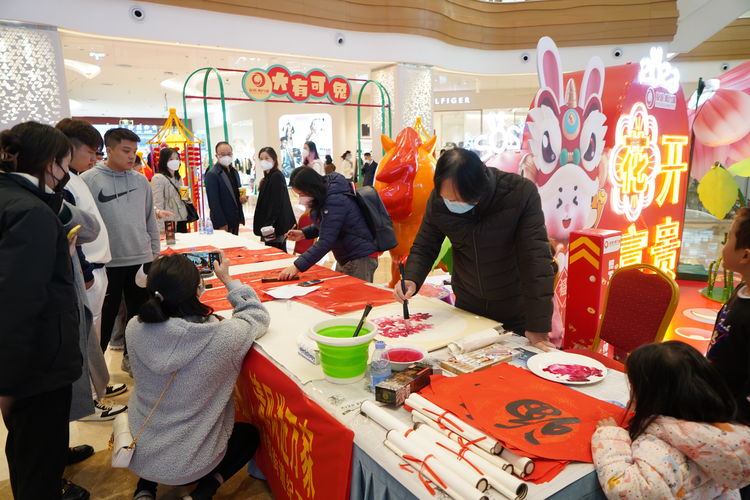 下午,海南萬泰公司參加了由轄區(qū)金貿(mào)街道工委、金貿(mào)街道商會等單位在友誼·陽光城一樓舉辦的2023年新春送福活動。面對廣大居民群眾的期待,書法家們鋪紙、沾墨、起筆、落筆,一起一落行云流水,一撇一捺龍蛇騰躍,在紅彤彤的紙上揮毫潑墨,洋洋灑灑地寫下一個個飽含新春祝福的“?!弊?、一副副對仗工整,寓意美好的春聯(lián)、一張張栩栩如生的花鳥畫,以免費(fèi)贈予的形式,向大家送上了兔年祝福,活動現(xiàn)場到處洋溢著新春的氣氛。