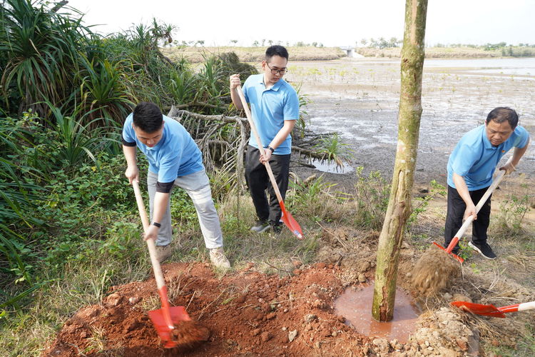 活動(dòng)當(dāng)天,艷陽高照,晴空萬里,大家紛紛拿著鐵鍬,拎起水桶,以十足的干勁與熱情積極投入到植樹播種中,挖坑、放苗、扶正、填土、澆水,一氣呵成,全然不顧揮灑的汗水。在大家的分工合作下,一棵棵新栽苗木迎風(fēng)挺立,給初春的大地增添了盎然的生機(jī)和蓬勃的朝氣,形成了一道亮麗的風(fēng)景線。海南萬泰公司黨支部書記曹珊珊及部分黨員紛紛表示,將會(huì)把本次實(shí)踐活動(dòng)的所學(xué)所感融入到今后工作與生活中,不斷提升自我,努力為建設(shè)美麗新海南不斷地添磚加瓦。