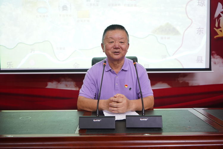 一身紅軍裝,一支教鞭,一幅母瑞山革命根據(jù)地示意圖。85歲的老黨員、王學廣老館長邁著穩(wěn)健的步伐走向講臺,為大家生動地講述著母瑞山革命歷史,使大家真真切切了解到了母瑞山革命根據(jù)地在抗擊日軍、殲滅國民黨反動軍斗爭過程中的光輝事跡以及母瑞山人民用鮮血和生命演繹的革命斗爭感人故事,重現(xiàn)了瓊崖革命志士當年在母瑞山戰(zhàn)斗的崢嶸歲月。