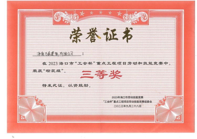 本次技能大賽為建筑工人搭建了很好的學(xué)習(xí)交流平臺(tái),既是對(duì)各參賽企業(yè)職工勞動(dòng)技能能力的一次檢閱,又進(jìn)一步提升了工友們的專(zhuān)業(yè)技能。下一步,海南萬(wàn)泰公司將繼續(xù)引導(dǎo)全體職工樹(shù)立“奮勇拼搏,建工自貿(mào)港”的崇高理想,發(fā)揚(yáng)團(tuán)隊(duì)合作精神,以昂揚(yáng)的斗志、求實(shí)的作風(fēng)、精湛的技術(shù)為企業(yè)的高質(zhì)量發(fā)展貢獻(xiàn)新能量。