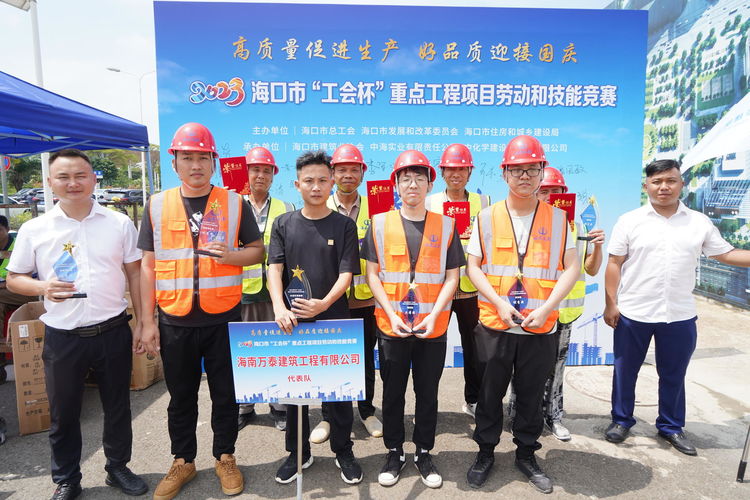 為進(jìn)一步弘揚(yáng)勞模工匠精神和發(fā)揮職工先進(jìn)示范帶頭作用,推動(dòng)企業(yè)高質(zhì)量發(fā)展 ,9月28日上午,由??谑锌偣?huì)、??谑邪l(fā)展改革委員會(huì)、??谑凶》亢统青l(xiāng)建設(shè)局主辦,海口市建筑業(yè)協(xié)會(huì)、中海實(shí)業(yè)有限責(zé)任公司、中化學(xué)建設(shè)(海南)有限公司承辦的2023??谑袆趧?dòng)技能競(jìng)賽-建筑行業(yè)技能比賽,在由中化學(xué)建設(shè)(海南)有限公司承建的中國(guó)海油深海能源開(kāi)發(fā)總指揮部基地項(xiàng)目01地塊項(xiàng)目部隆重舉行。來(lái)自海南萬(wàn)泰建筑工程有限公司、中化學(xué)建設(shè)(海南)有限公司、中國(guó)建筑第五工程局有限公司等9家海南省建筑業(yè)企業(yè),共計(jì)110名參賽選手同臺(tái)競(jìng)技,互相角逐,賽出水平,展現(xiàn)風(fēng)采。海南萬(wàn)泰公司總經(jīng)理顏利、黨支部書(shū)記曹珊珊及總經(jīng)辦、工程部、綜合部有關(guān)人員參加本次活動(dòng)。