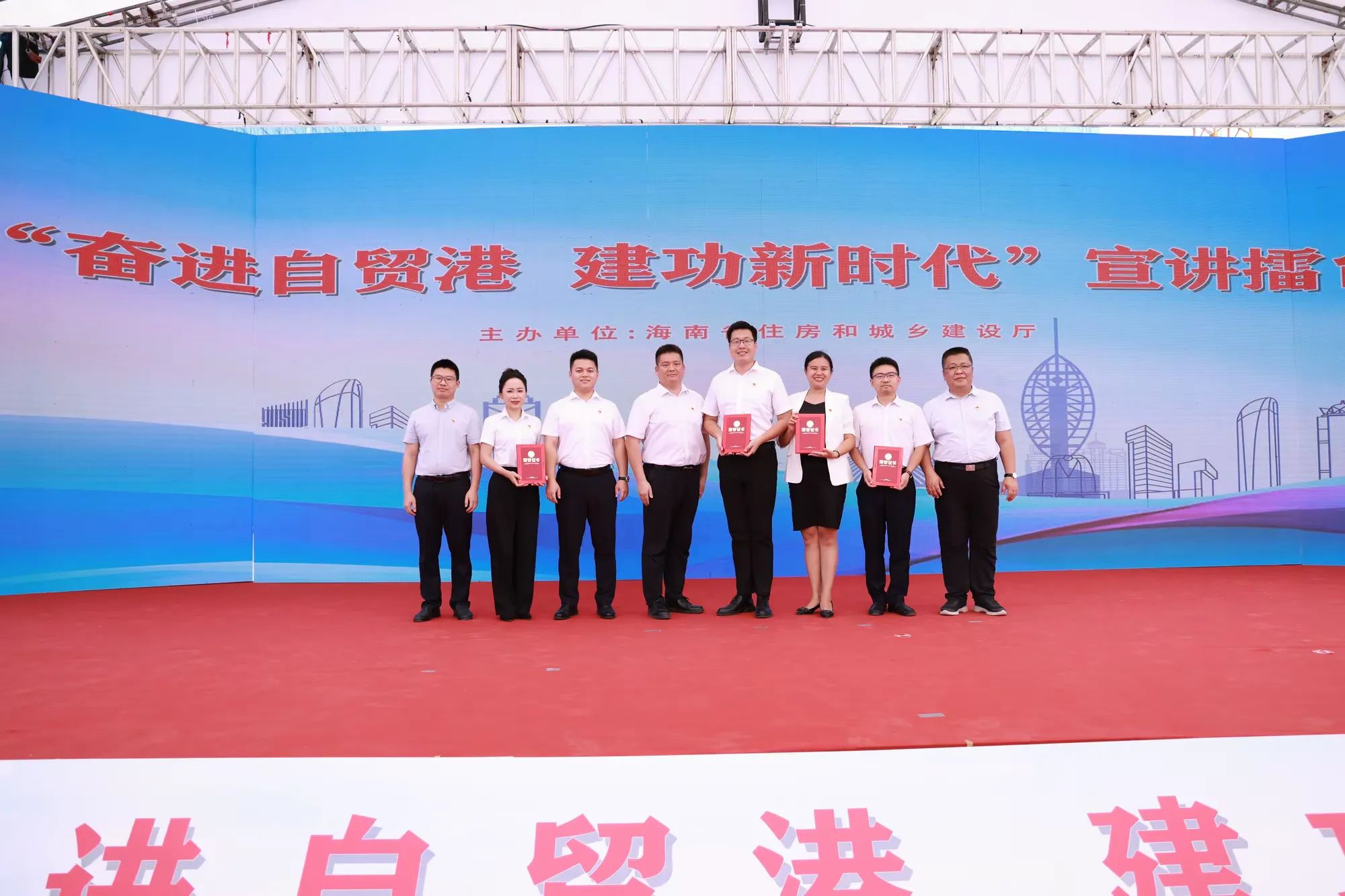 為深入學(xué)習(xí)貫徹習(xí)近平新時(shí)代中國(guó)特色社會(huì)主義思想,進(jìn)一步發(fā)揮理論宣講統(tǒng)一思想、凝心聚力作用,激勵(lì)廣大干部群眾在加快海南自貿(mào)港建設(shè)中擔(dān)當(dāng)作為、干事創(chuàng)業(yè),6月29日,由海南省住建廳主辦,海南省質(zhì)安局、中化學(xué)建設(shè)(海南)有限公司共同承辦的“奮進(jìn)自貿(mào)港,建功新時(shí)代”宣講擂臺(tái)賽決賽在中國(guó)海油深海能源開(kāi)發(fā)總指揮部基地01地塊項(xiàng)目舉辦。省住建廳黨組成員、副廳長(zhǎng)劉聯(lián)偉,省委直屬機(jī)關(guān)工委組織部部長(zhǎng)潘雅斯,中化學(xué)建設(shè)(海南)有限公司總經(jīng)理張小龍等相關(guān)單位領(lǐng)導(dǎo)出席比賽現(xiàn)場(chǎng),為所有參賽選手們加油助威。