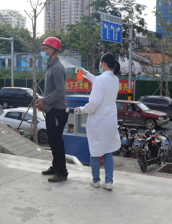 對一線建設(shè)者逐一進行消毒