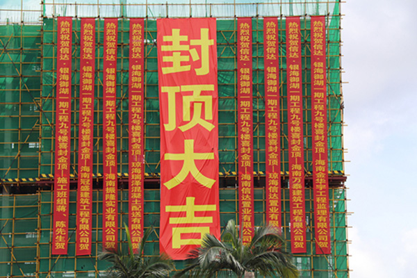 自今年二月份瓊?!靶胚_?銀海御湖(一期)”項目開工以來,海南萬泰施工團隊不畏艱辛,克服海南高溫多雨的氣候特點,保質(zhì)、保量,緊張施工,嚴格把控項目的各個施工細節(jié),“信達?銀海御湖(一期)”項目9#樓率先完成主體封頂。