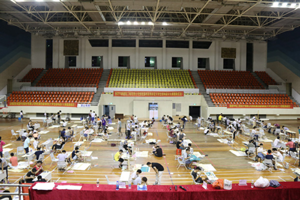 9點整,由海南大學校土木建筑系領導宣布比賽正式開始,同學們迫不及待的開始動手制作模型。薄如紙片的竹皮要裁切成相等長度和寬度的長條,用502膠水粘成竹棍,作為塔架的主梁和柱子。不僅要承受的住幾十斤鐵塊的重壓,還要承受的住相當于汶川地震級別的加載測試。選手們一個個信心滿滿,細心耐心加上專心。根據規(guī)則,比賽提供的膠水竹皮等材料如果不夠是不補發(fā)的,所以大家都小心翼翼,生怕出現意外。