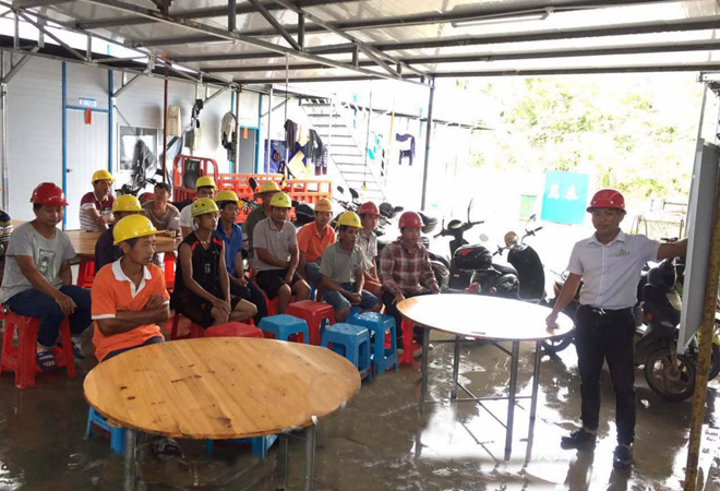 為提高全員消防意識,增強工人在緊急情況下的應(yīng)變能力和自我防護能力,加強工地消防安全管理,強化工地自查自糾工作機制,有效消除火災(zāi)隱患,營造一個安全文明的施工環(huán)境。8月29日上午,海南萬泰建筑工程有限公司邀請了瓊中縣消防大隊,在瓊中加釵農(nóng)場加鑫商業(yè)廣場項目部開展了意義重大的消防演練活動,帶領(lǐng)項目工人學習消防知識技能。