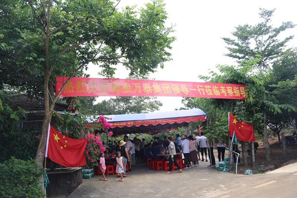 萬泰員工與當?shù)卮迕衤?lián)餐,氣氛融洽歡樂。就餐完畢后,在萬泉河文化研究會莫會長的帶領下,前往內(nèi)園村的“紅色娘子軍成立會址”參觀學習。