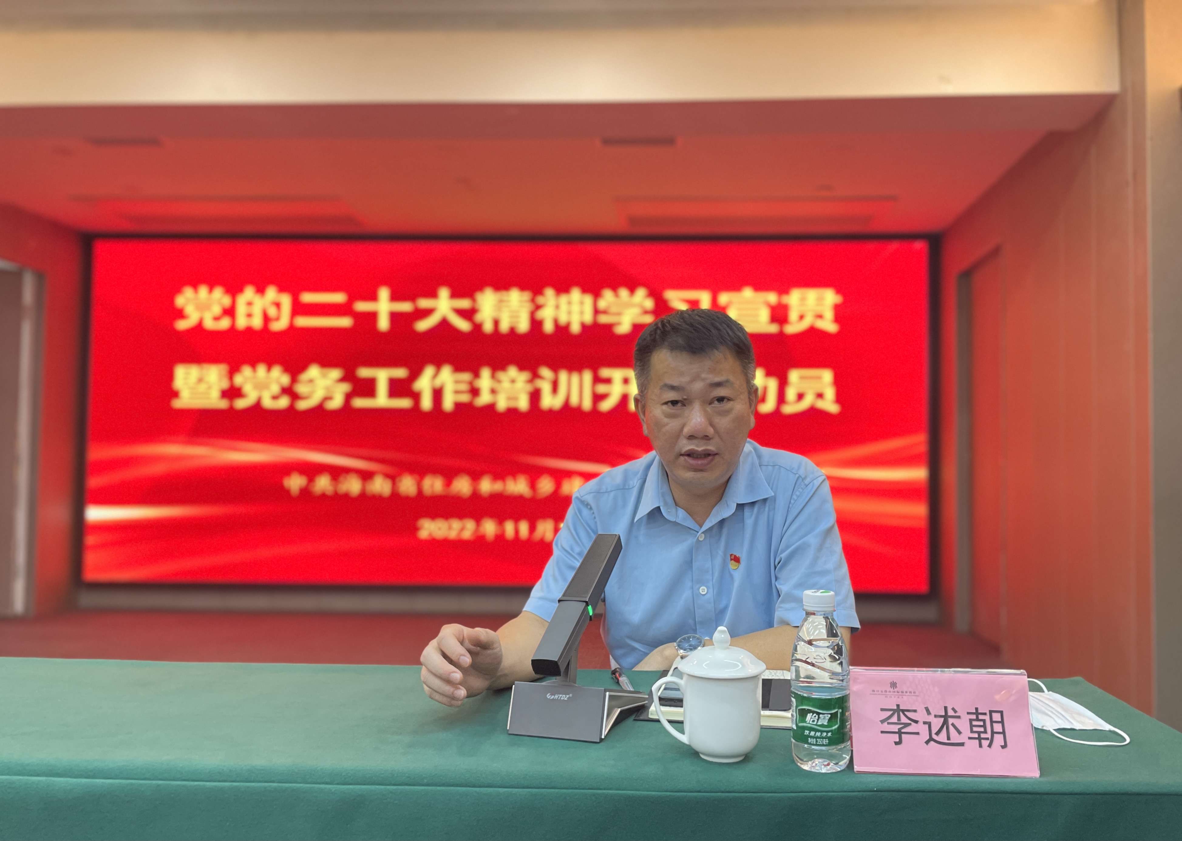 省住建廳黨組成員、副廳長、行業(yè)黨委書記陳孝京到會作開班動員講話,并以“學(xué)習(xí)貫徹黨的二十大精神,扛起擔(dān)當(dāng),負起責(zé)任,以科技創(chuàng)新為抓手,加快建設(shè)具有世界影響力的中國特色自由貿(mào)易港”為主題講授了一堂生動的專題黨課。省住建行業(yè)黨委針對參訓(xùn)學(xué)員特點,結(jié)合黨的二十大精神與黨務(wù)工作,精心組織,合理設(shè)置培訓(xùn)內(nèi)容,特別邀請省委黨校的教授,分別為學(xué)員講授了《基層黨務(wù)工作實務(wù)》《中國共產(chǎn)黨的光輝歷程》《學(xué)習(xí)黨的二十大精神》等課程內(nèi)容。省住建行業(yè)黨委所屬各支部入黨積極分子、黨員發(fā)展對象、黨務(wù)工作者約100余人參加培訓(xùn)。