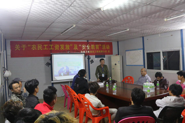 長期以來,海南萬泰都把農(nóng)民工利益擺在重要位置。不斷通過豐富的形式積極開展相關(guān)培訓教育活動。現(xiàn)今,鑒于年關(guān)將至,工資能否正常發(fā)放關(guān)系到農(nóng)民工的切身利益,為了進一步規(guī)范各項目農(nóng)民工工資發(fā)放手續(xù),維護農(nóng)民工合法權(quán)益,確保農(nóng)民工工資能夠正常發(fā)放,同時,為強化年底工地安全管理,進一步增強農(nóng)民工安全意識,海南萬泰計劃在年前對各項目實地開展相關(guān)培訓活動,切實做好年底相關(guān)準備工作。