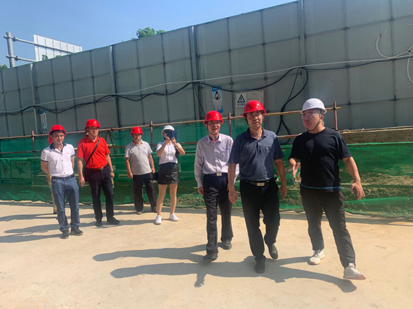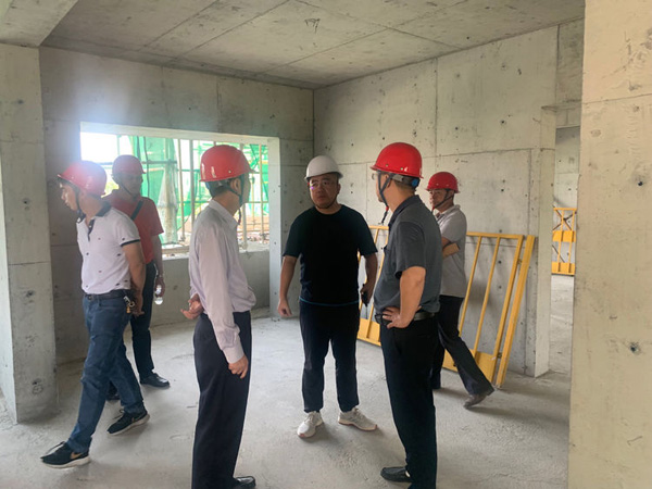 “國檢”檢查組的工作人員在張小龍總經(jīng)理的帶領(lǐng)下在博大·錦繡濱江工地進行實地檢查。