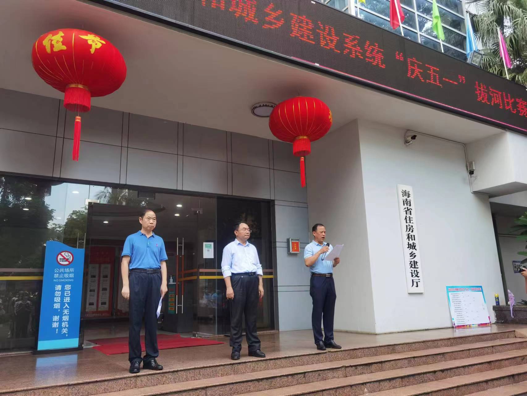 四月芳菲盡,五月花盛開。為深入落實(shí)省住建廳《關(guān)于舉辦“慶五一”五繩拔河比賽活動(dòng)的通知》,豐富公司職工業(yè)余文化生活,提高身體素質(zhì),5月15日上午,海南萬泰建筑工程有限公司黨支部、工會(huì)組織員工參加了由省住建廳主辦的“慶五一”五繩拔河比賽。省住建廳副廳長陳孝京、省建設(shè)工會(huì)專職副主席劉志偉、機(jī)關(guān)黨委專職副書記莫百超,廳相關(guān)處室、直屬單位及部分基層工會(huì)有關(guān)人員參加了本次比賽活動(dòng)。萬泰公司對(duì)本次活動(dòng)非常重視,派出了由王斌、王威、張豪杰、張樂開、林溪婷、孫彤、張會(huì)嶺組成的男女拔河隊(duì),韓文劍副總親自率隊(duì)組成啦啦隊(duì)全程加油助威。