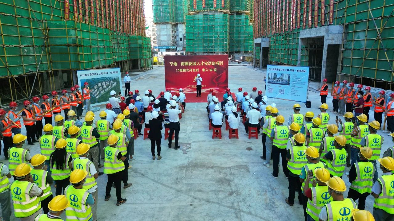為了貫徹落實(shí)黨的二十大精神,加快推進(jìn)白沙重點(diǎn)民生工程建設(shè),致力于打造宜居新生活,2022年11月29日,由海南萬泰建筑工程有限公司承建的省重點(diǎn)安居房項(xiàng)目——白沙亨通·南湖花園項(xiàng)目主體結(jié)構(gòu)全面封頂儀式圓滿舉行。白沙縣住建局、審批局、資規(guī)局、不動(dòng)產(chǎn)中心及融媒體中心相關(guān)負(fù)責(zé)人,亨通安居集團(tuán)董事長周金華,萬泰公司副總經(jīng)理張宇、工程部部長侯領(lǐng)等有關(guān)人員參加本次封頂儀式,一同見證這一喜慶時(shí)刻。儀式由亨通安居集團(tuán)經(jīng)理冼繼利主持。