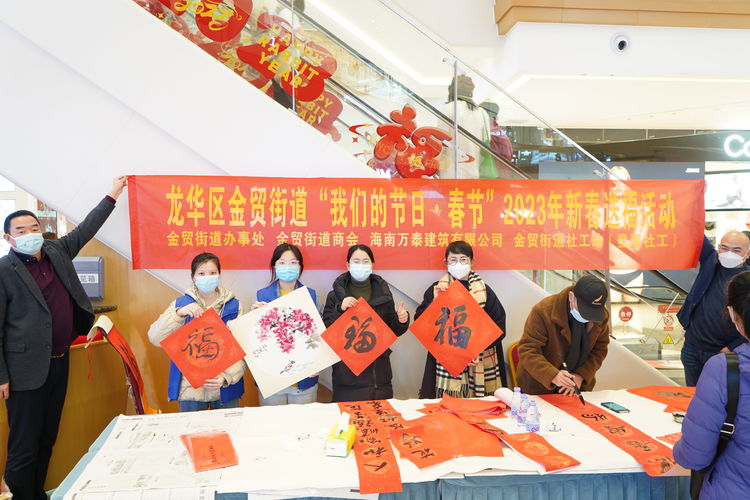 下午,海南萬泰公司參加了由轄區(qū)金貿(mào)街道工委、金貿(mào)街道商會等單位在友誼·陽光城一樓舉辦的2023年新春送福活動。面對廣大居民群眾的期待,書法家們鋪紙、沾墨、起筆、落筆,一起一落行云流水,一撇一捺龍蛇騰躍,在紅彤彤的紙上揮毫潑墨,洋洋灑灑地寫下一個個飽含新春祝福的“?!弊?、一副副對仗工整,寓意美好的春聯(lián)、一張張栩栩如生的花鳥畫,以免費(fèi)贈予的形式,向大家送上了兔年祝福,活動現(xiàn)場到處洋溢著新春的氣氛。