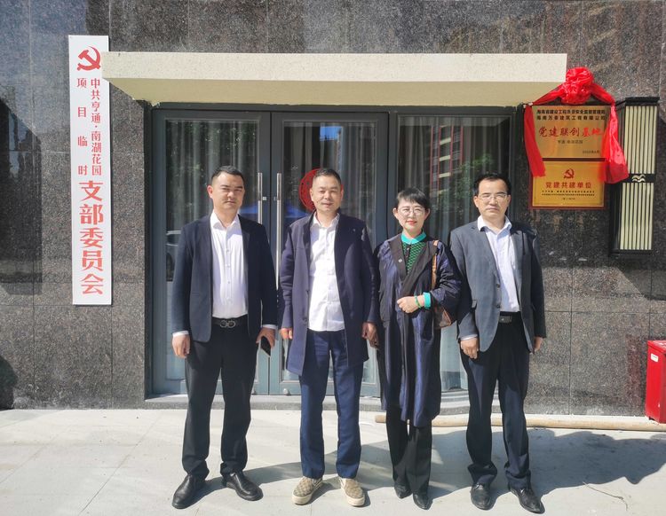 當(dāng)日上午,海南萬泰公司黨支部、工程部,白沙亨通集團董事長周金華、亨通·南湖花園項目臨時黨支部書記何承中、項目總負責(zé)人劉普等有關(guān)人員共同為黨建聯(lián)建共創(chuàng)基地進行揭牌。