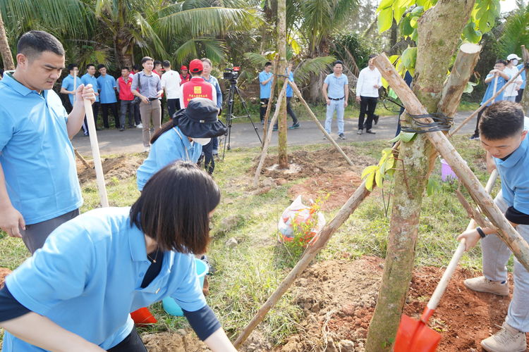 活動(dòng)當(dāng)天,艷陽高照,晴空萬里,大家紛紛拿著鐵鍬,拎起水桶,以十足的干勁與熱情積極投入到植樹播種中,挖坑、放苗、扶正、填土、澆水,一氣呵成,全然不顧揮灑的汗水。在大家的分工合作下,一棵棵新栽苗木迎風(fēng)挺立,給初春的大地增添了盎然的生機(jī)和蓬勃的朝氣,形成了一道亮麗的風(fēng)景線。海南萬泰公司黨支部書記曹珊珊及部分黨員紛紛表示,將會(huì)把本次實(shí)踐活動(dòng)的所學(xué)所感融入到今后工作與生活中,不斷提升自我,努力為建設(shè)美麗新海南不斷地添磚加瓦。