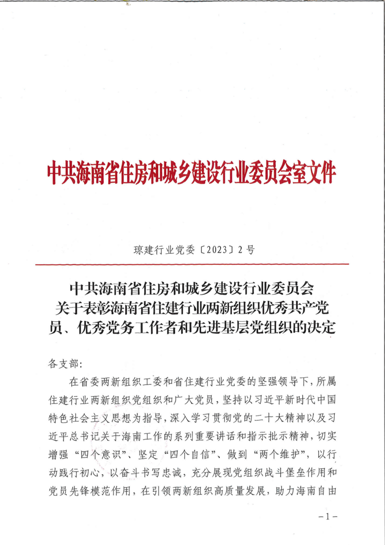 盛夏七月,喜事連連。在慶祝中國共產(chǎn)黨成立102周年之際,根據(jù)海南省住建行業(yè)黨委《關(guān)于表彰海南省住建行業(yè)兩新組織優(yōu)秀共產(chǎn)黨員、優(yōu)秀黨務(wù)工作者和先進(jìn)基層黨組織的決定》的通知,海南萬泰建筑工程有限公司黨支部喜獲2021-2022年度“海南省住建行業(yè)兩新組織先進(jìn)基層黨組織”榮譽(yù)稱號(hào);公司黨支部的3名黨員同志分別喜獲2021-2022年度海南省住建行業(yè)兩新組織“優(yōu)秀共產(chǎn)黨員”以及“優(yōu)秀黨務(wù)工作者”榮譽(yù)稱號(hào)。