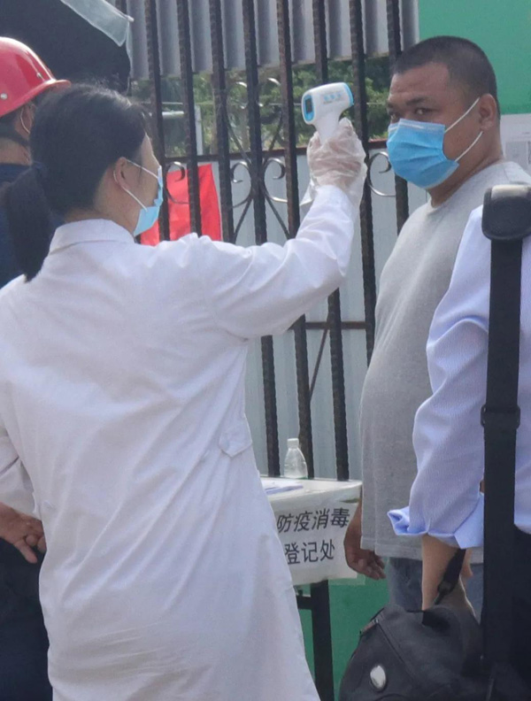 為一線建設(shè)者測量體溫