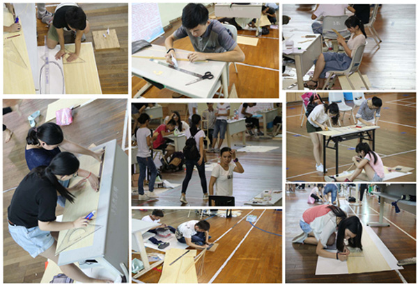 此次參賽的70支隊(duì)伍按照賽前抽簽順序分別進(jìn)行了加載測(cè)試。加載前,先由選手小心的將30公斤的鐵塊輕放在由竹皮、502膠水粘制而成的四層塔架上,塔架頂層還要放置4立升的水箱。參賽隊(duì)員就其模型的設(shè)計(jì)思路、傳力路徑、構(gòu)造特點(diǎn)及創(chuàng)新之處等方面做2分鐘陳述。參賽作品各具特色,構(gòu)思新穎,體現(xiàn)出了參賽隊(duì)員扎實(shí)的力學(xué)與結(jié)構(gòu)知識(shí)、活躍的思維、豐富的想象力及較強(qiáng)的創(chuàng)新意識(shí)。隨后,評(píng)委老師提問,參賽隊(duì)員答辯;提問內(nèi)容多涉及基本力學(xué)及結(jié)構(gòu)概念、模型受力性能等。之后,進(jìn)行模型加載。加載共分三級(jí),加載的控制位移依次增大;加載級(jí)數(shù)的遞增不僅考驗(yàn)著模型的牢固性,更左右著參賽隊(duì)員和觀眾們的心情。整個(gè)環(huán)節(jié),工作人員各司其職,現(xiàn)場(chǎng)組織有條不紊,氣氛熱烈。