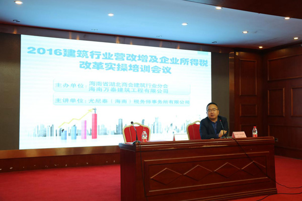 本次講座為期一天,特邀請尤尼泰(海南)稅務(wù)師事務(wù)所有限公司注冊稅務(wù)師賈世國先生;注冊稅務(wù)師、注冊會計師孫利平女士,從專業(yè)角度,結(jié)合建筑行業(yè)自身特色,就“營改增”及企業(yè)所得稅改革的應(yīng)對和實際操作方法做了詳細(xì)的講解。