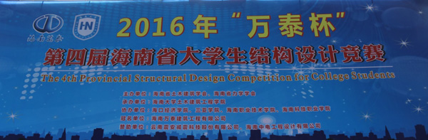 2016年5月28日早8點,由海南萬泰建筑工程有限公司贊助并冠名的“萬泰杯”第四屆海南省大學生結構設計大賽在海南大學聯(lián)誼館拉開了序幕。