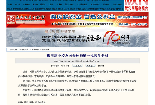 梅川高中校友張小龍向母校捐贈一批教學(xué)器材